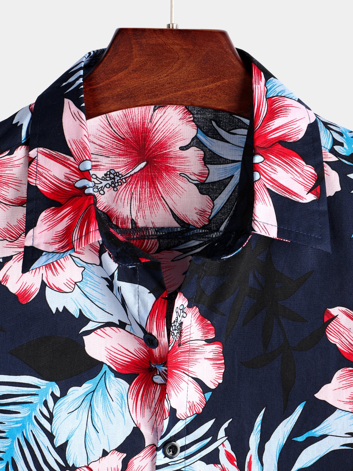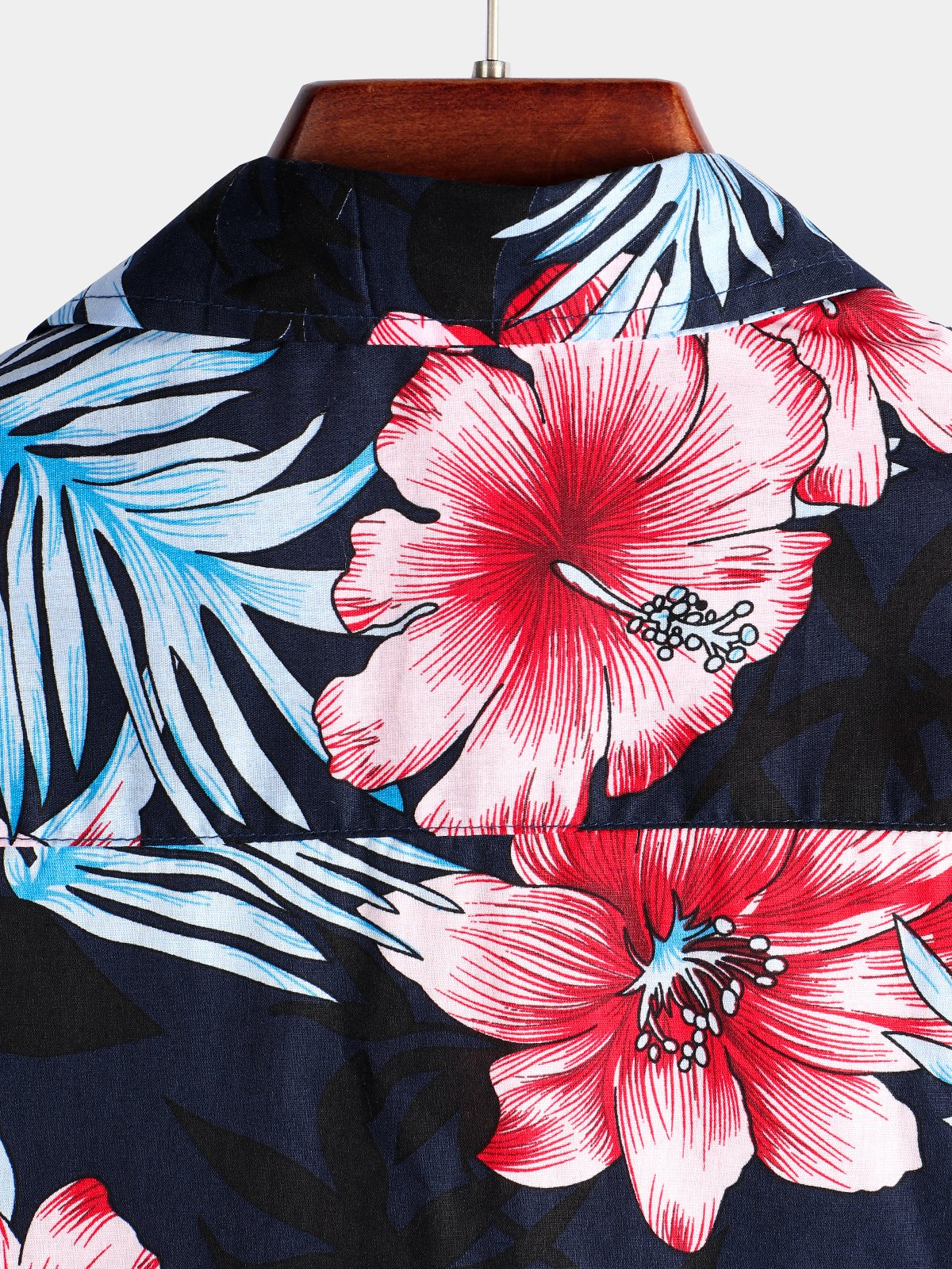 Men's Hawaii Tropical Plant Print Floral Cotton Shirt