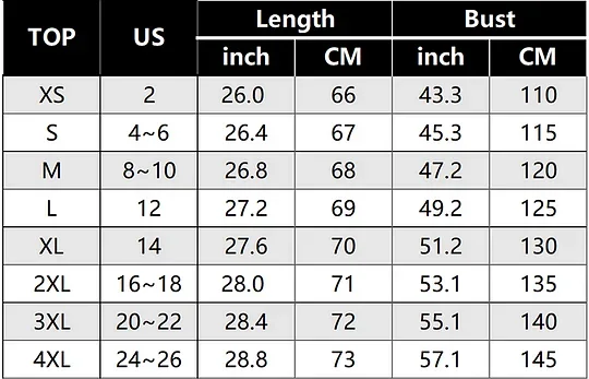 Size Chart: